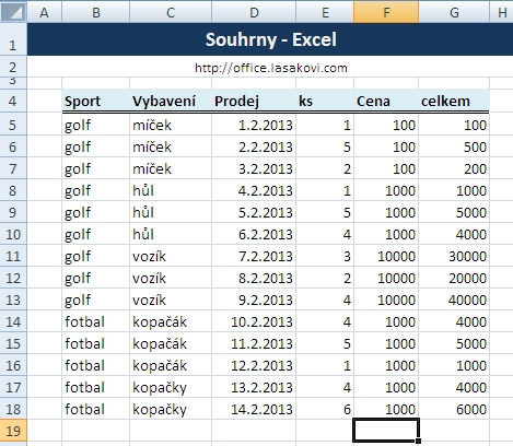 Excel tabulka sčítání