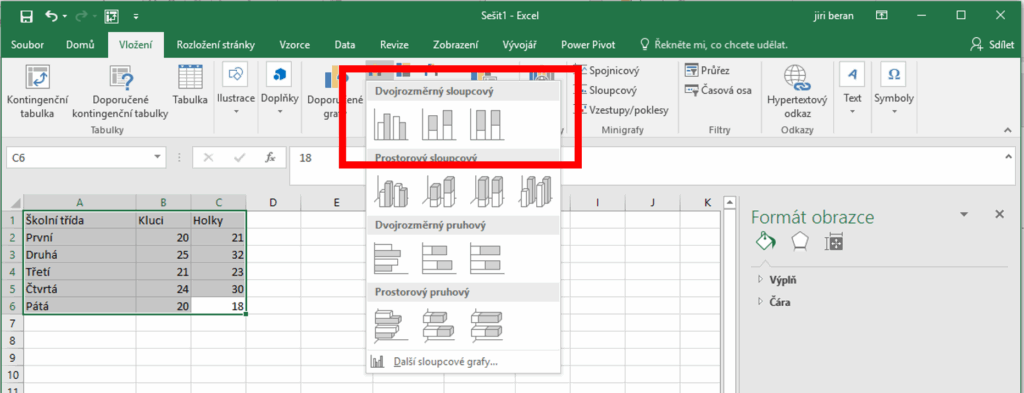 Typy grafů v excelu